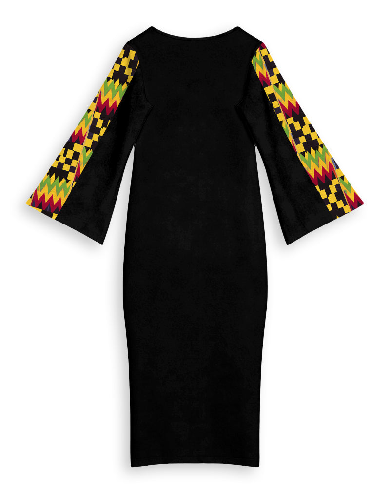 Ankara African American Culture Print Patchwork Round Neck Bell Sleeve Bodycon Long Dress