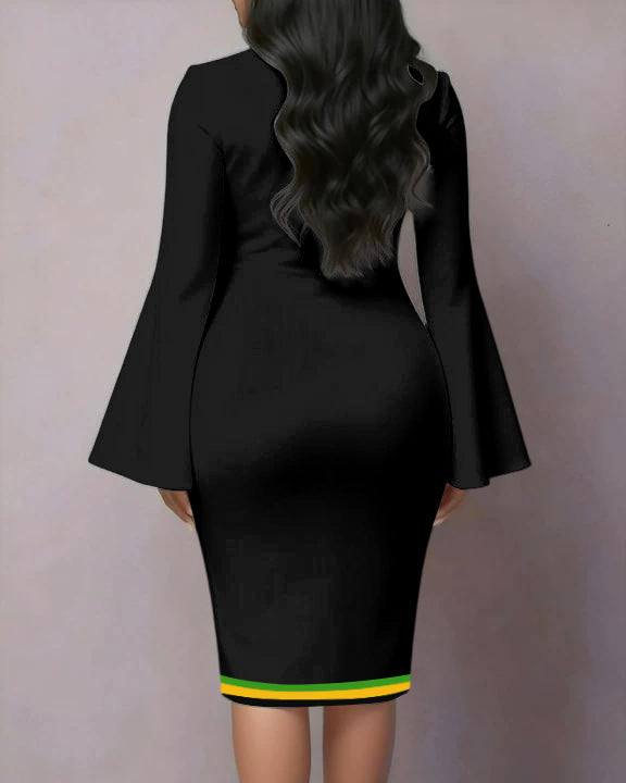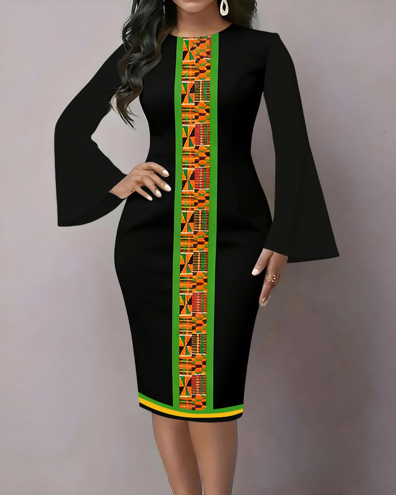 African Geometric Print Flared Sleeves Midi Dresses
