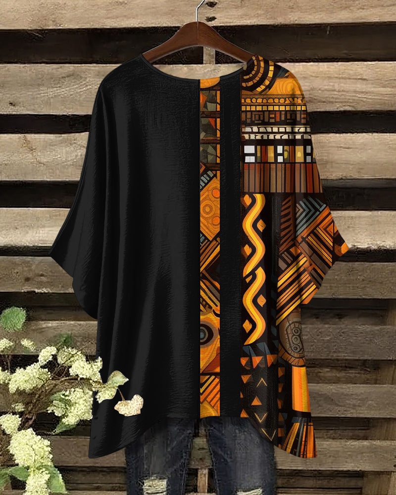 Geometric Pattern Prints Round Neck Irregular Shirt