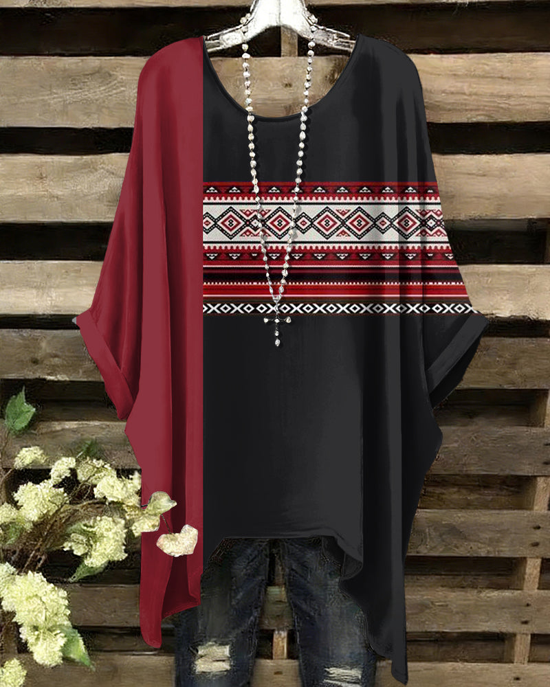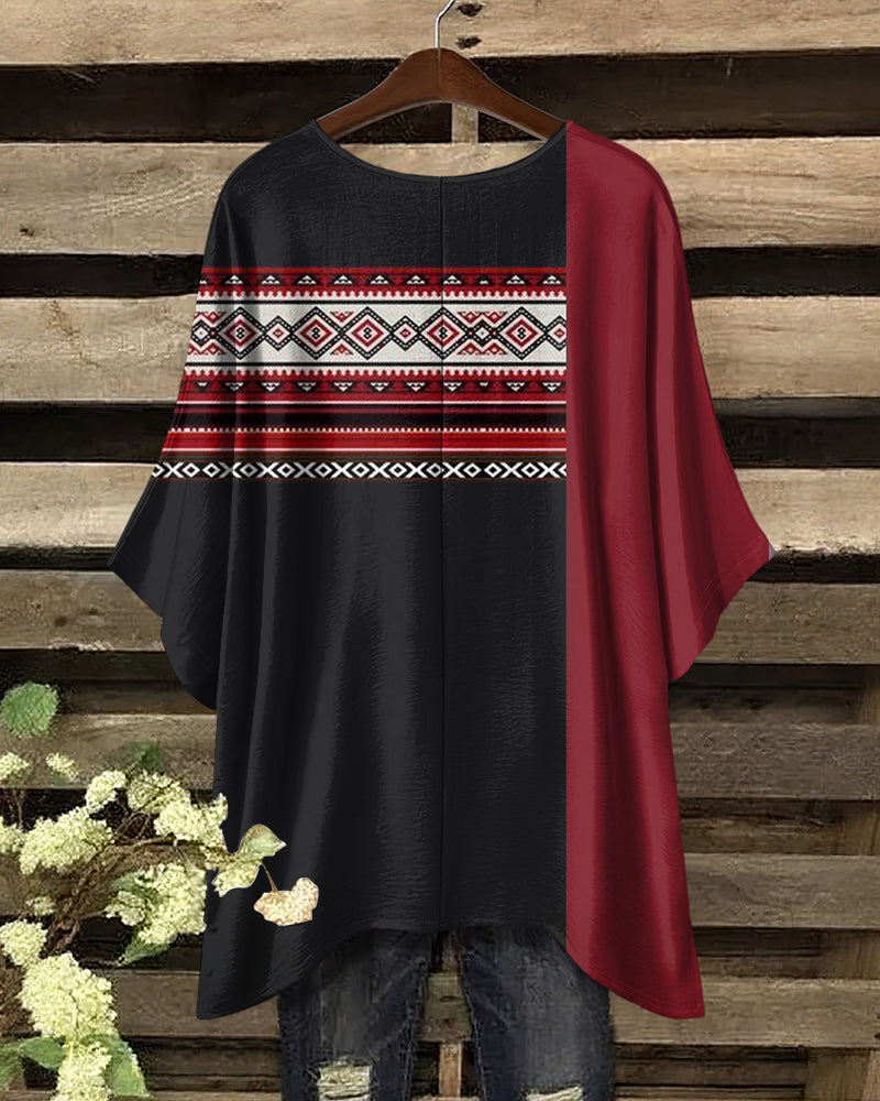 Irregular Geometric Stripe Splicing Prints Round Neck Irregular Shirt