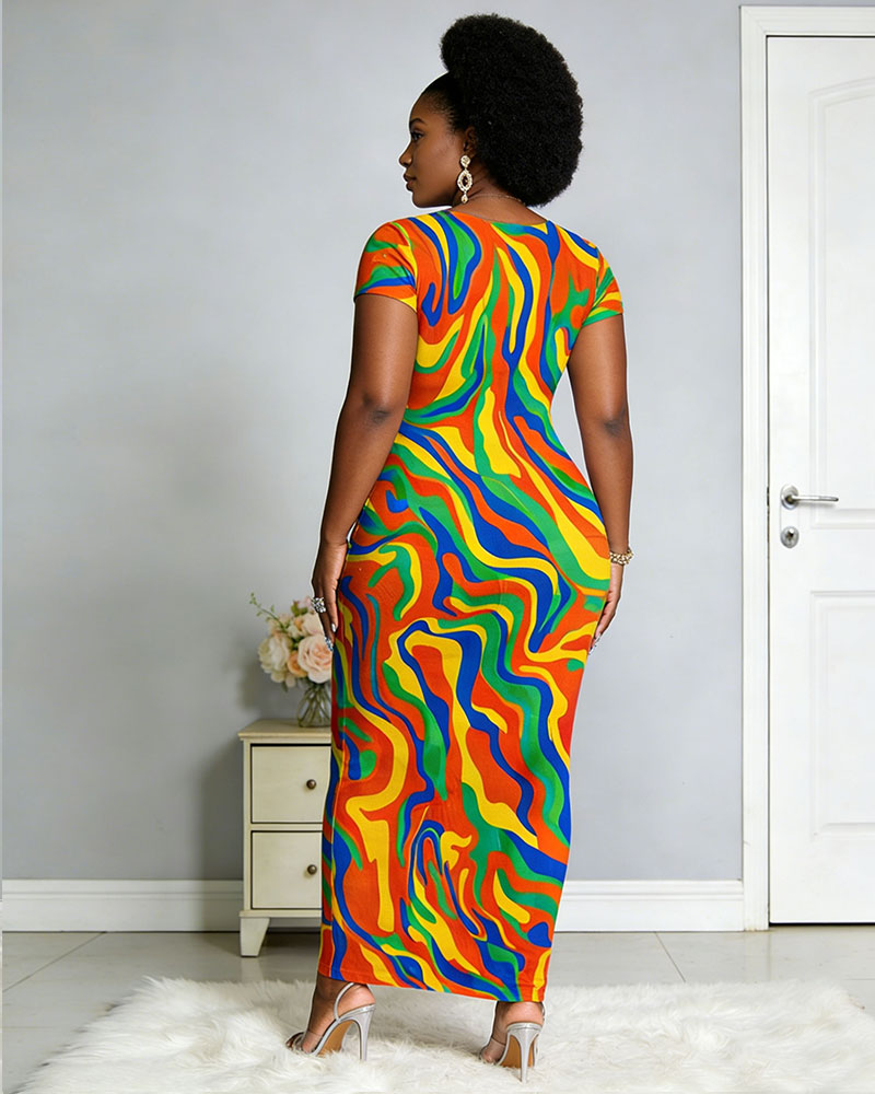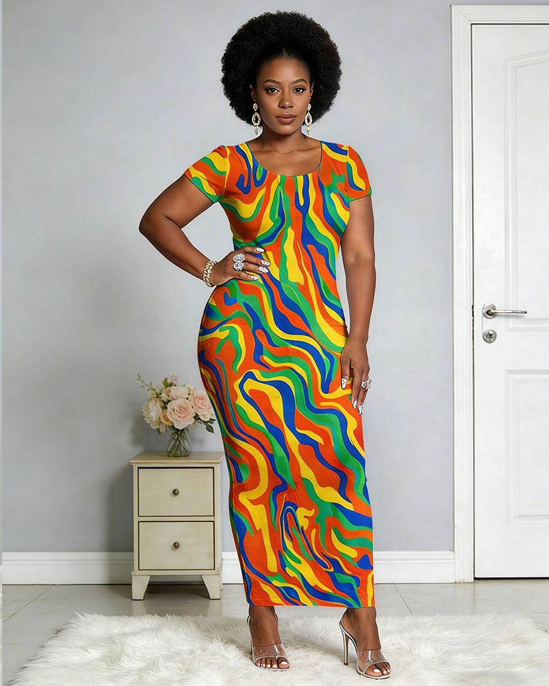Ethnic Traditional Color Printed Short-sleeved Dress