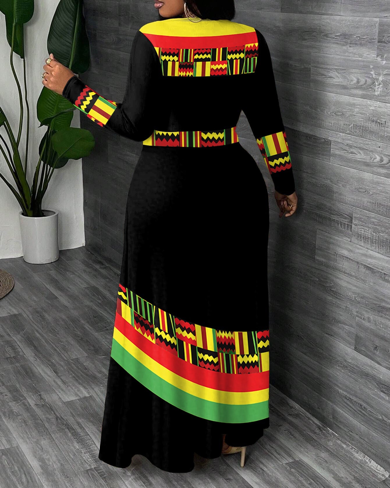 Ankara Printed Patchwork Round Neck Bell Sleeve Bodycon Long Dress