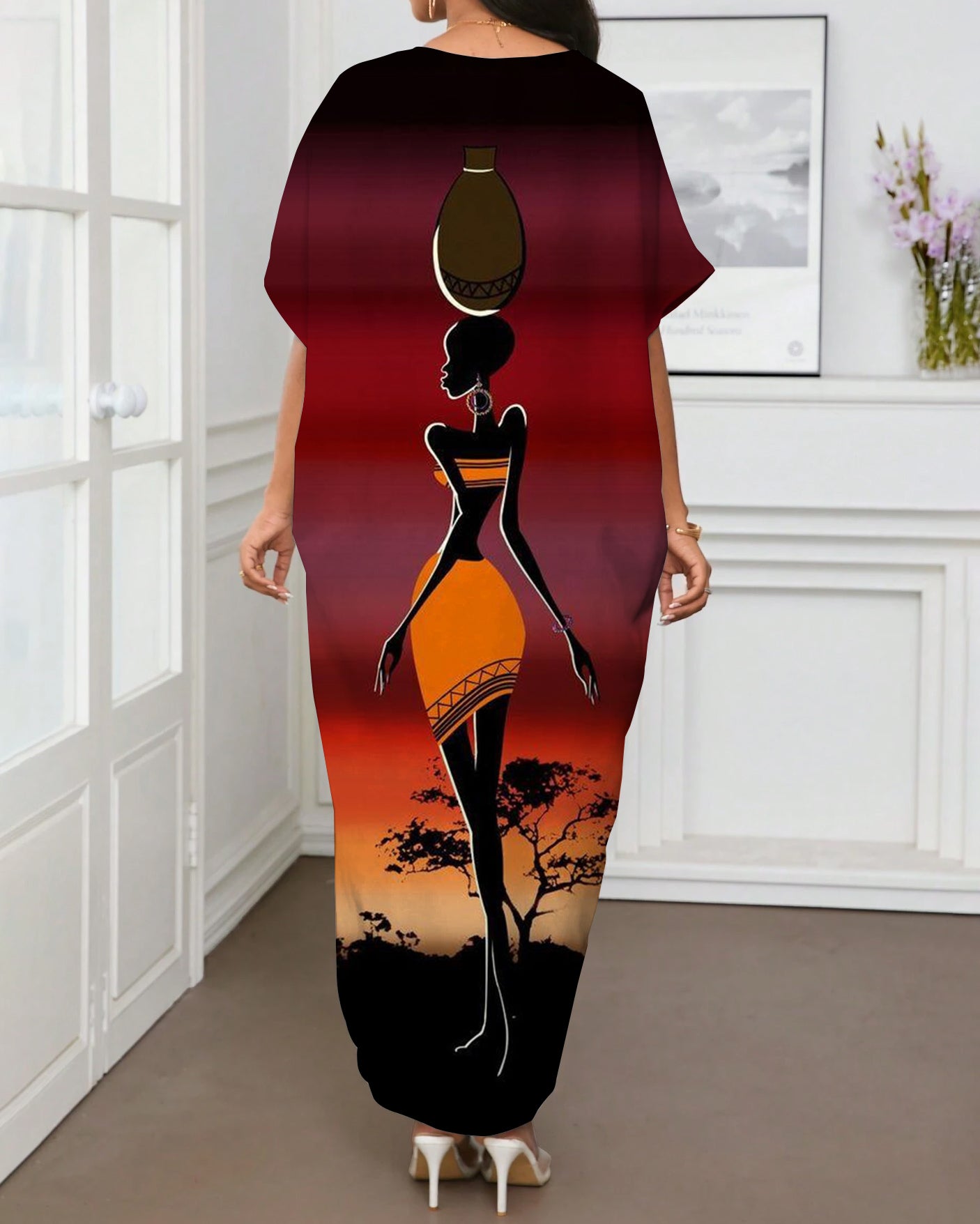 African Savanna Women Art Illustrations V-neck Casual Elegant Dress