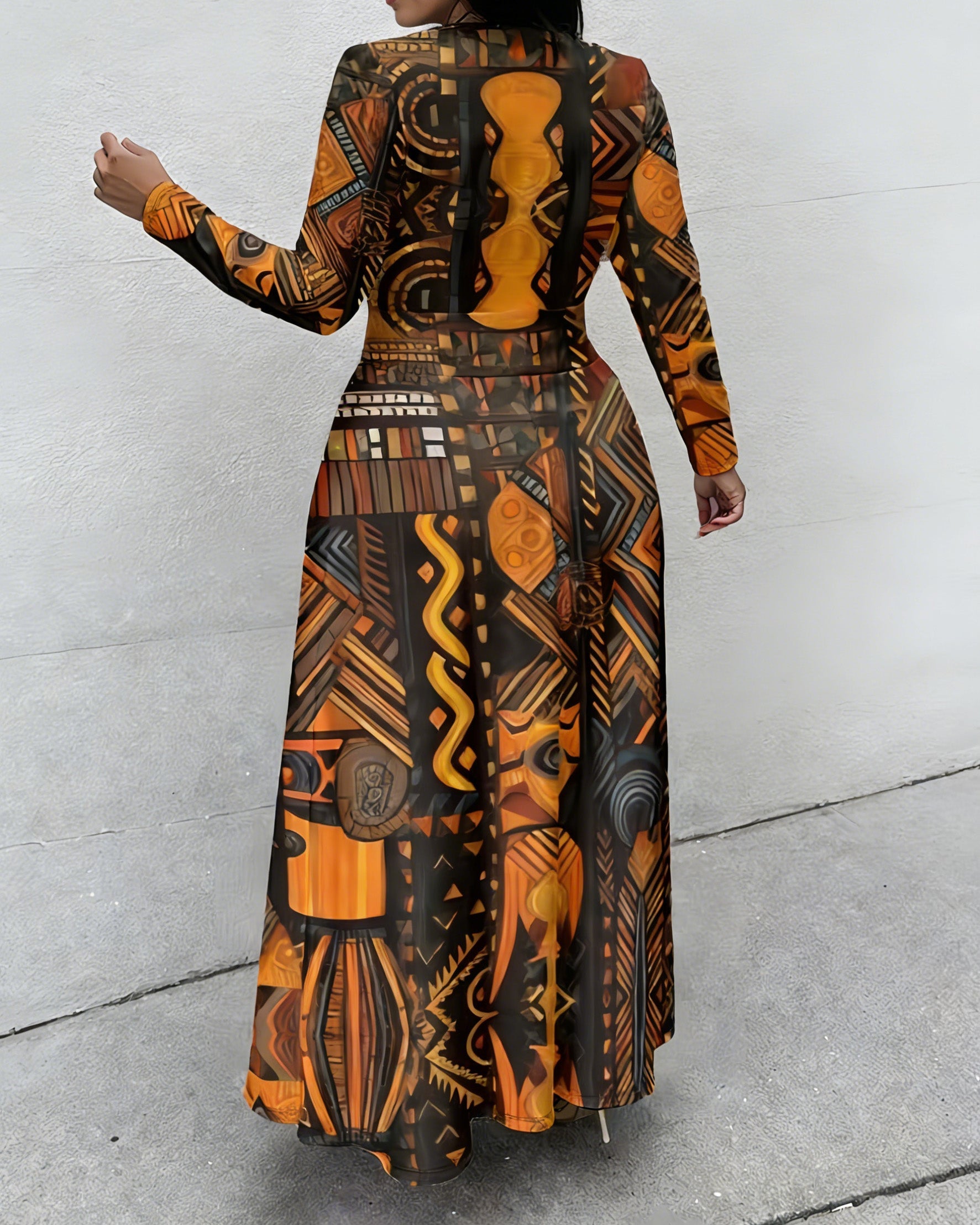Geometric Totem Tribal Prints Crewneck Long Sleeve Pocket Dress