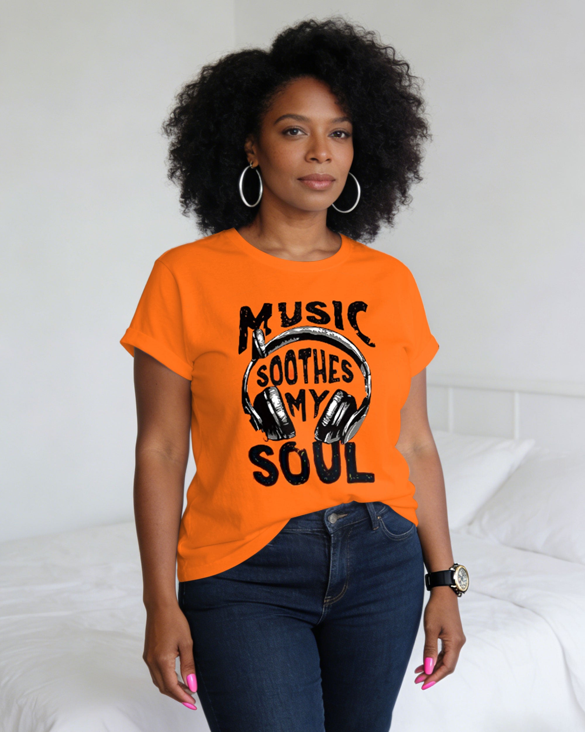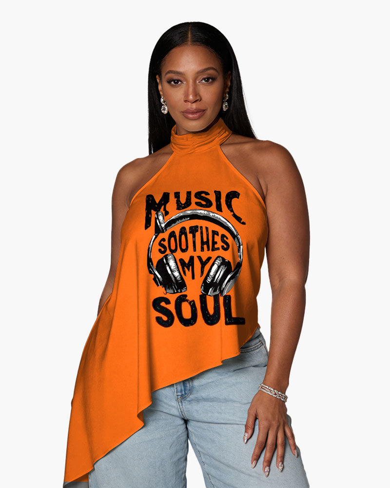 Music Festival Pattern Printed Short-sleeved T-shirt (Pure Cotton)/Hanging Neck Hanging Top/V-Neck Ruffled Top