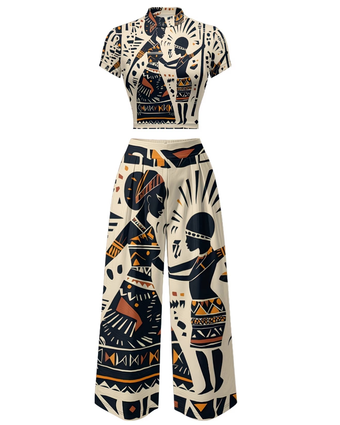 African Women Art Print High Waist Wide-leg Women's Two-piece Set