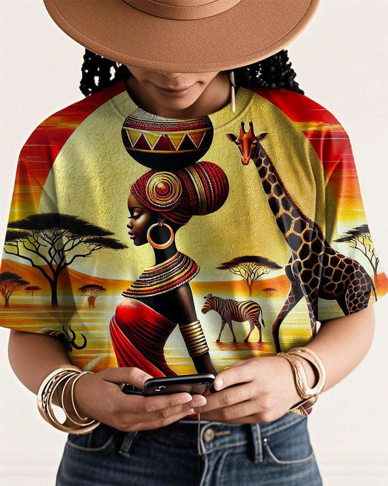 African Savanna Girl Crew Neck Short Sleeve Tshirt