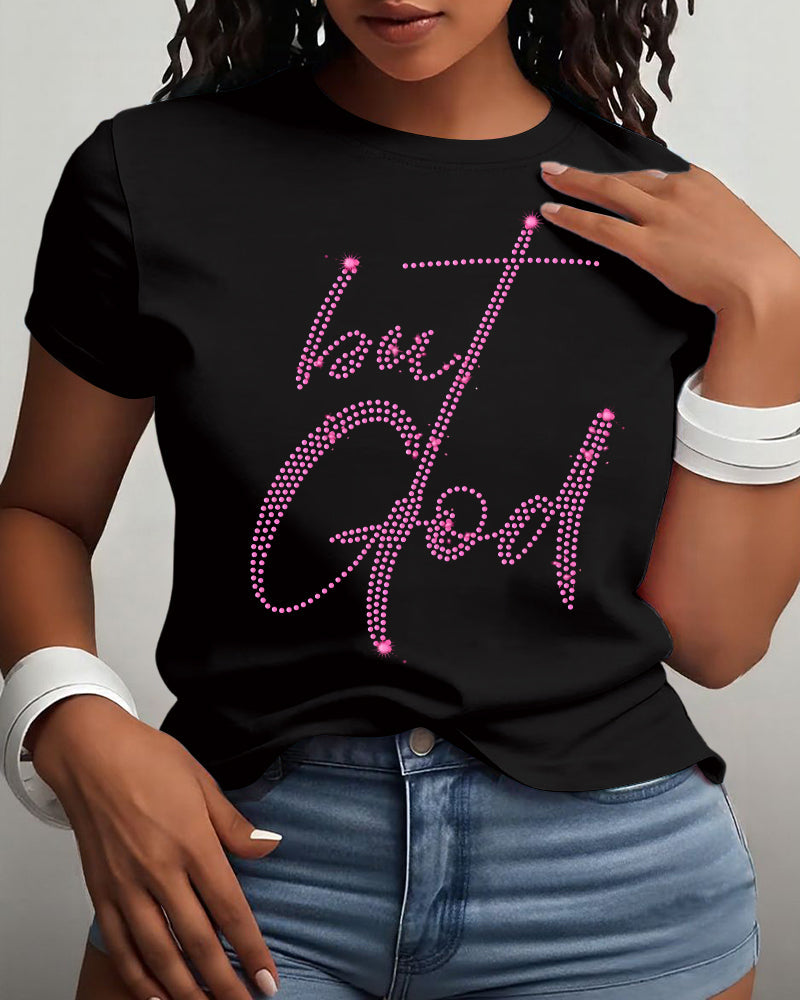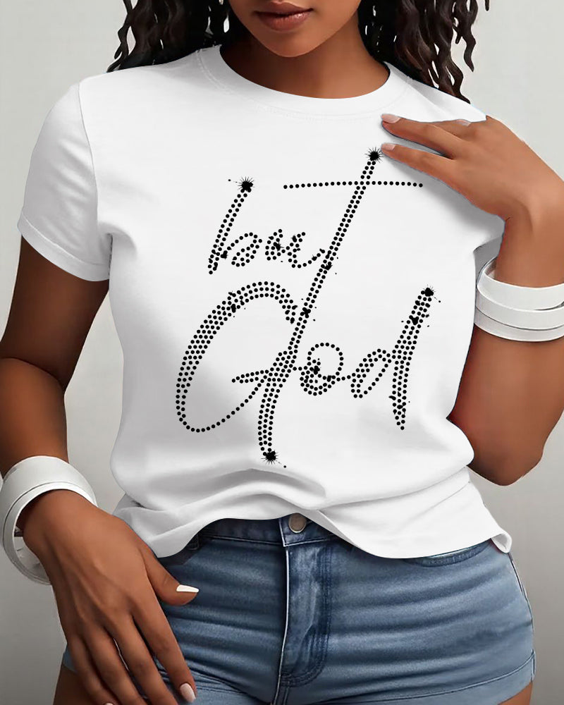 But God Rhinestone Printing Cotton Short Sleeve Tshirt