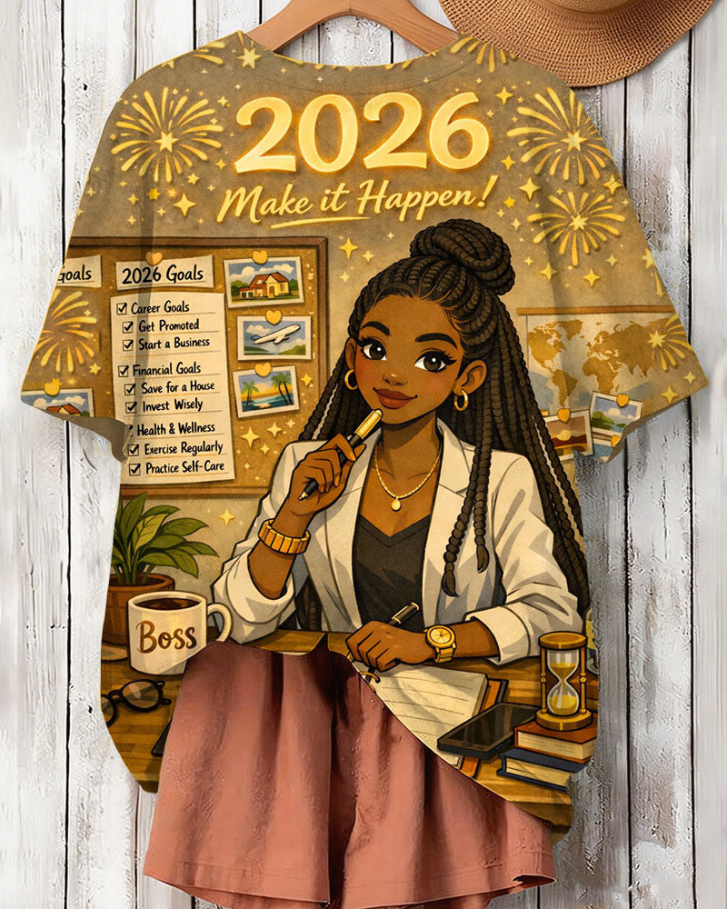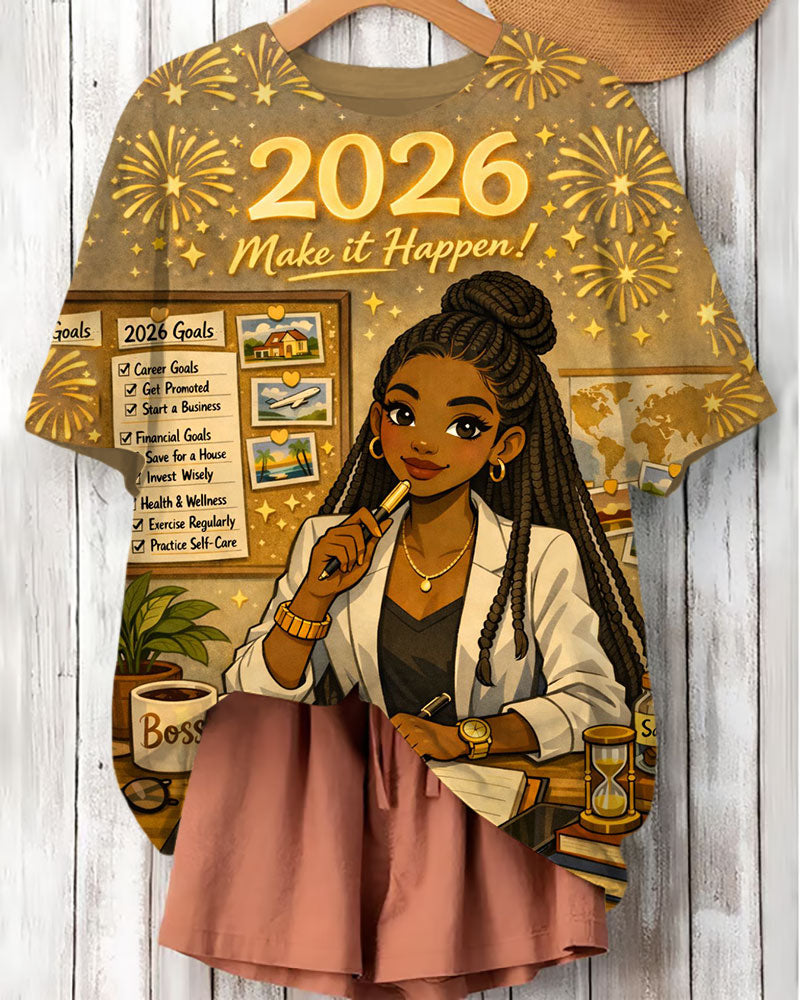 2026 Goals Achieved Print Crew Neck Short Sleeve T-Shirt