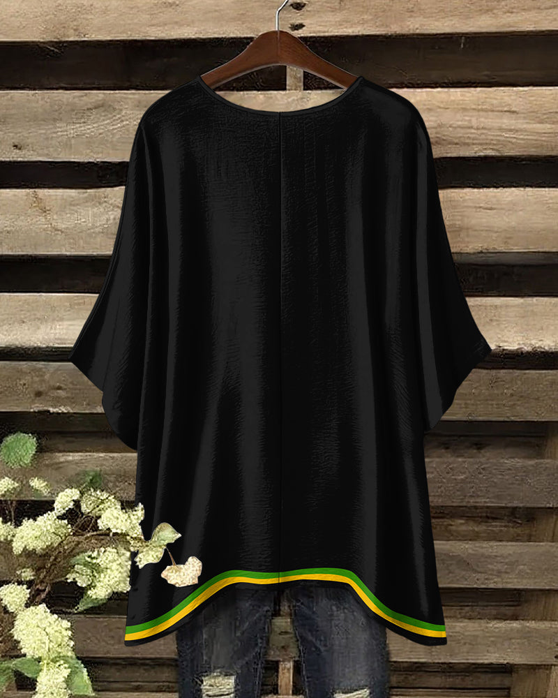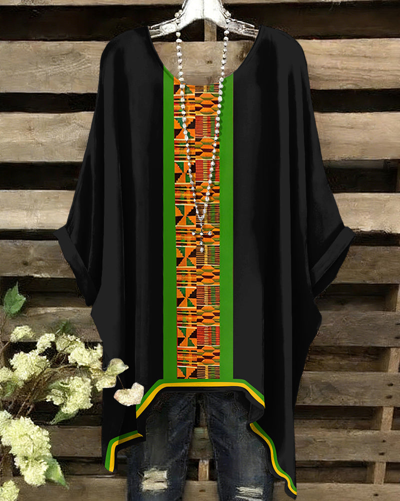 African Geometric Stripe Print Round Neck Irregular Shirt