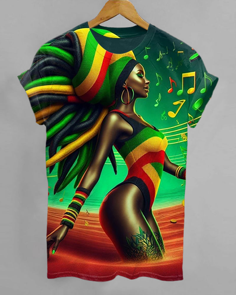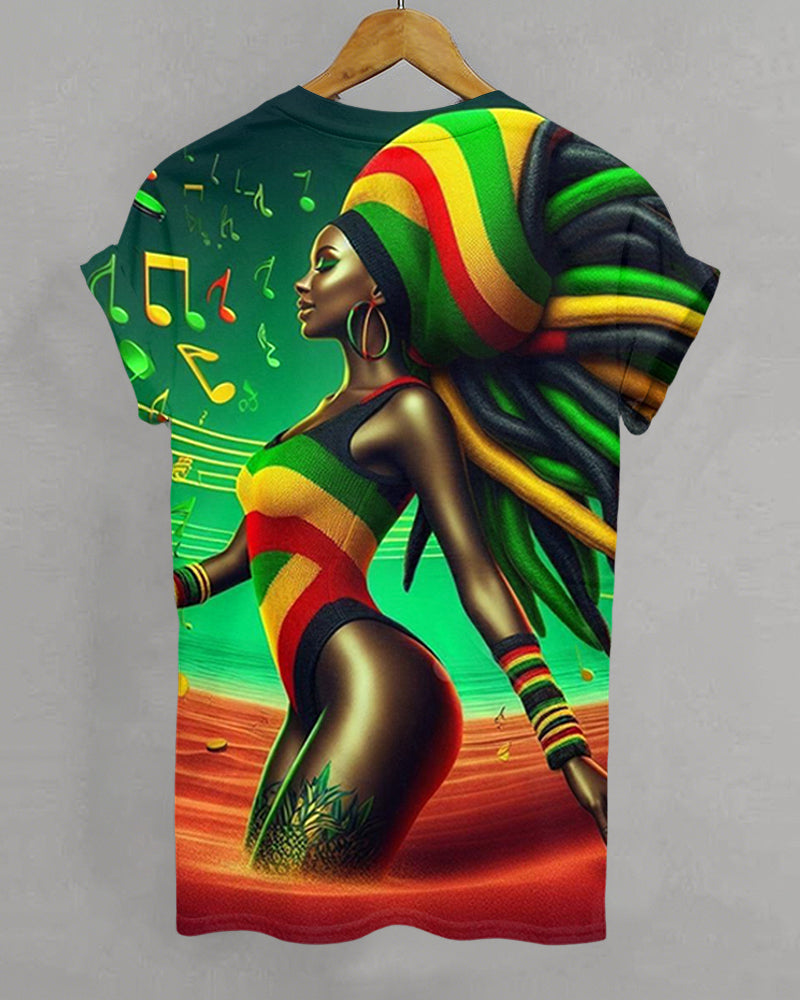 Reggae Music Festival Drumming Girl Printed Cotton Casual Crew Neck Short Sleeve T-Shirt