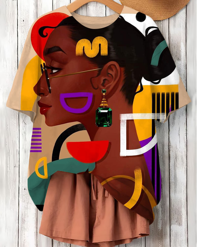 Modern Figures Art Print Crew Neck Short Sleeve T-Shirt