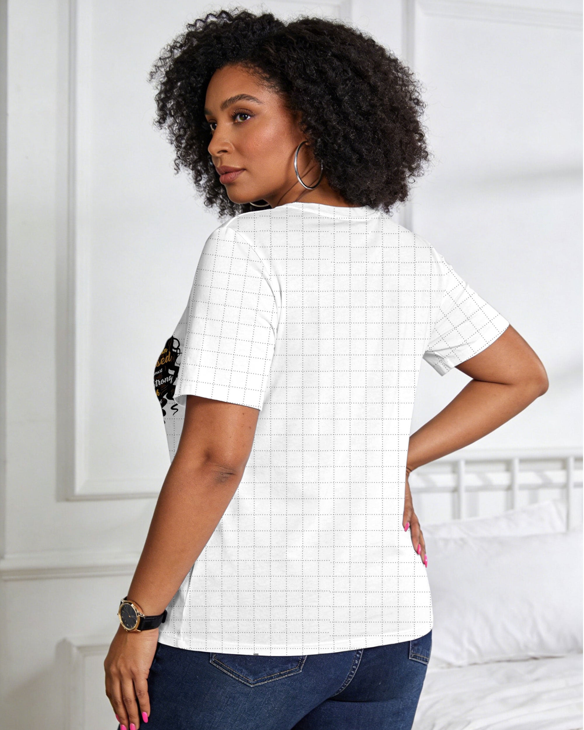 Pearl Afro Black Woman Crew Neck Short Sleeve Tshirt