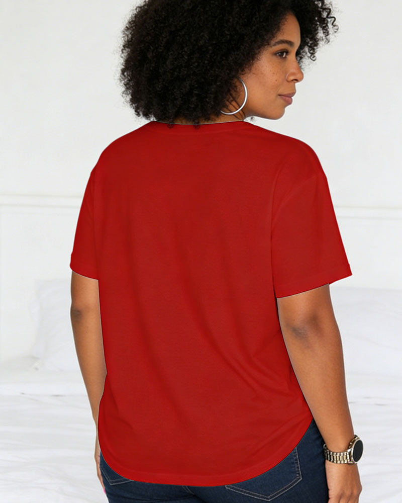 Pattern Printed Short-sleeved T-shirt (pure Cotton)/neck Slanted Top/V-neck Ruffled Top