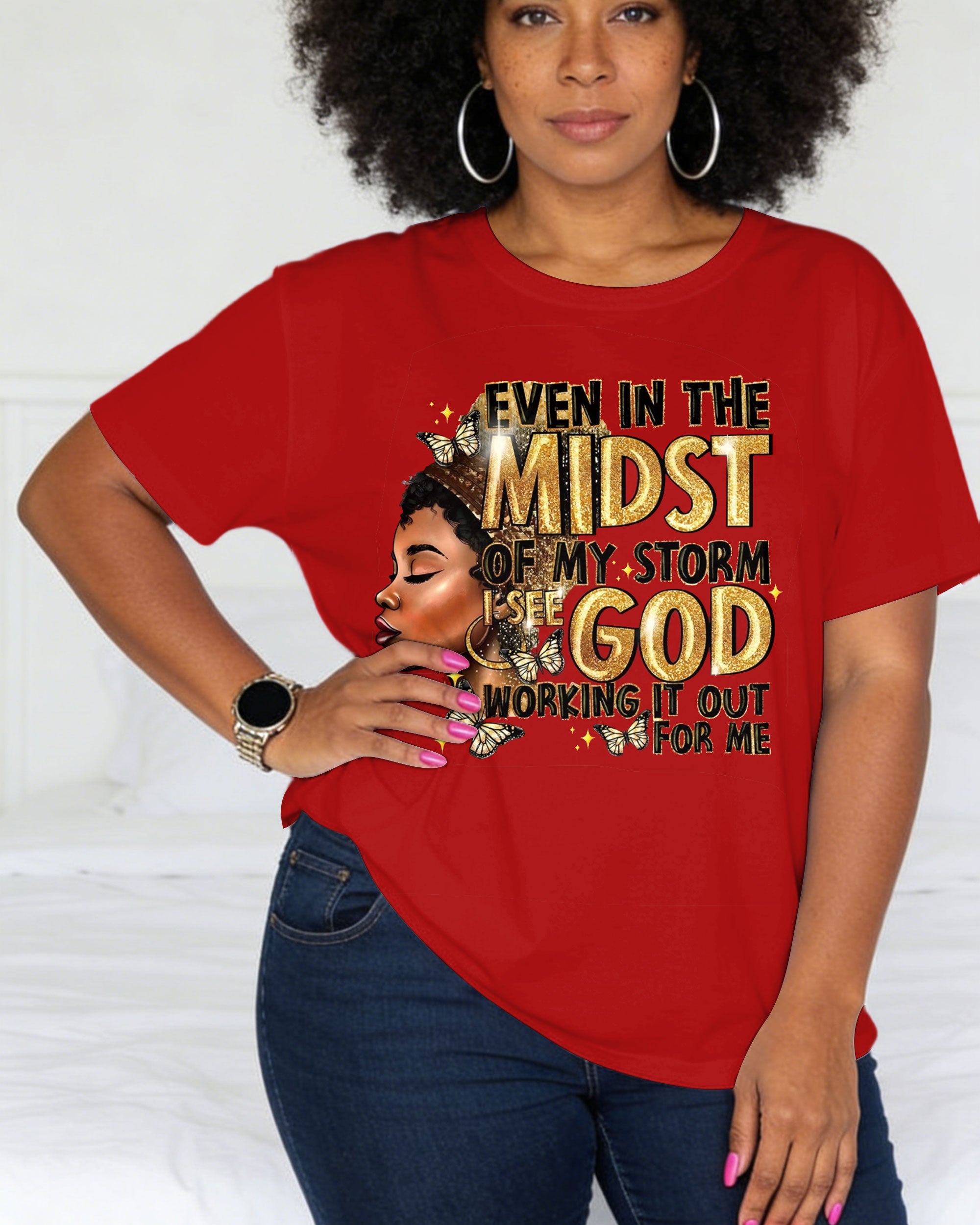 Pearl Afro Black Woman Crew Neck Short Sleeve Tshirt