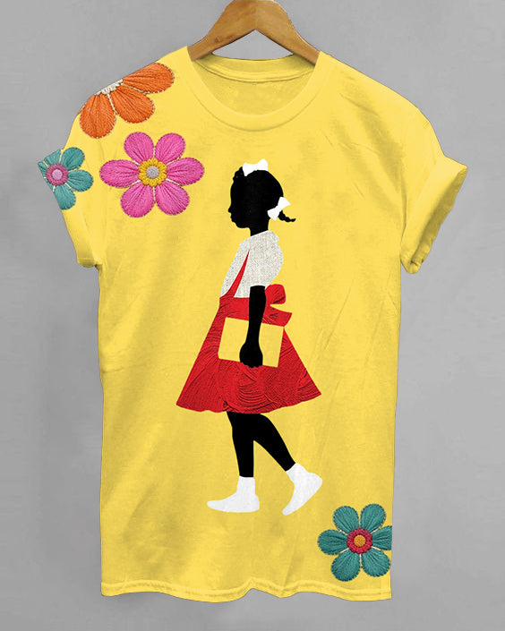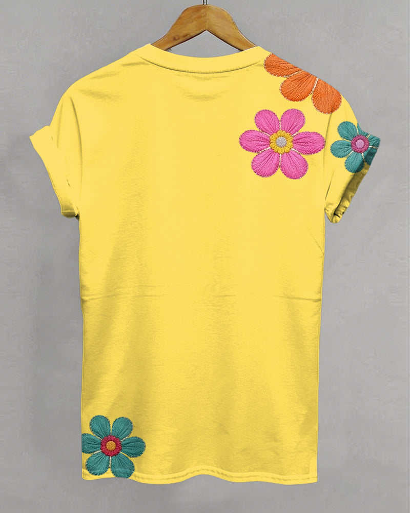 Ruby Bridges Flowers Print Crew Neck Short Sleeve Tshirt