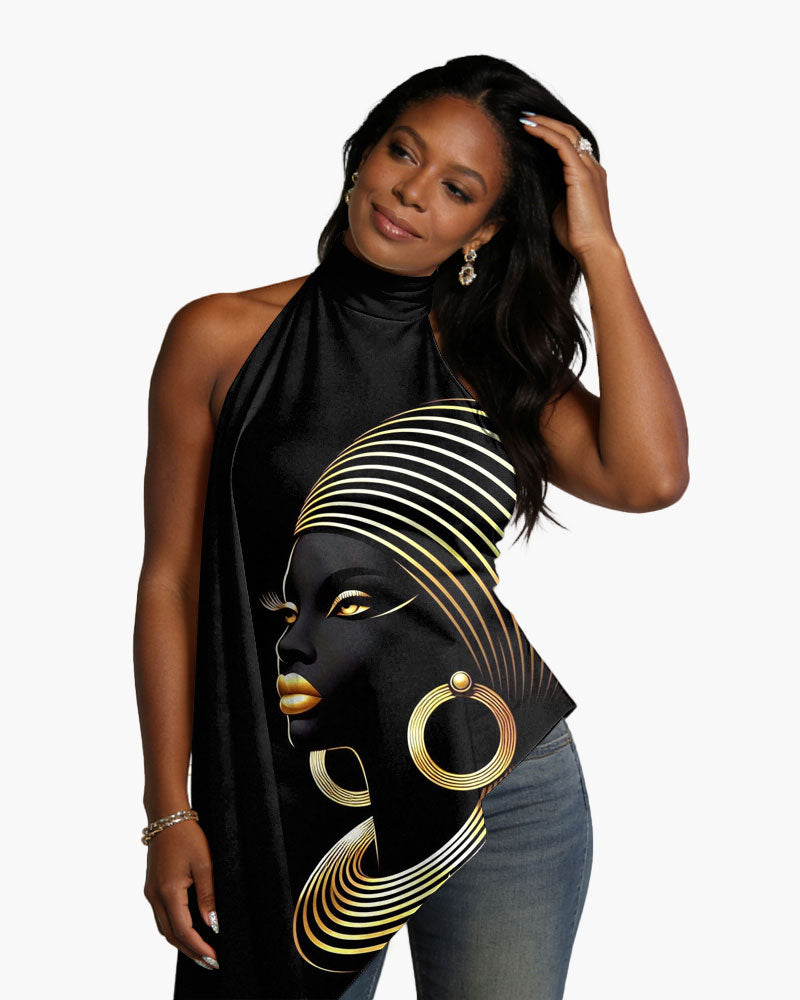 Spring And Summer New Hanging Neck Hanging Top Ethnic Women Pattern Printing