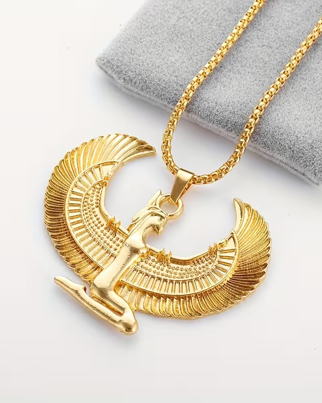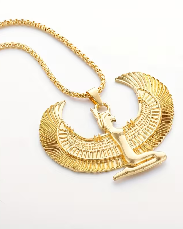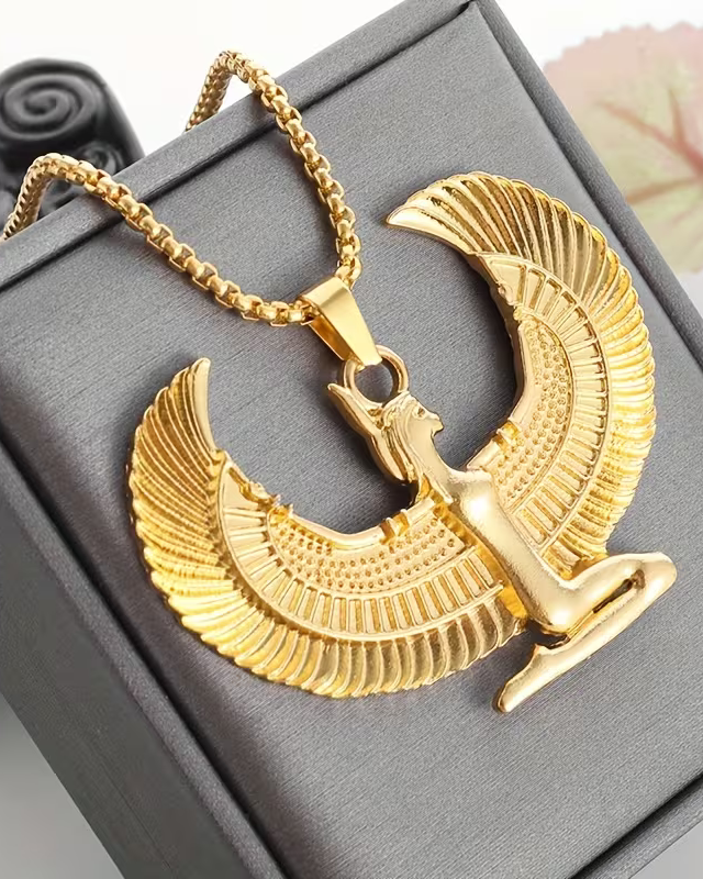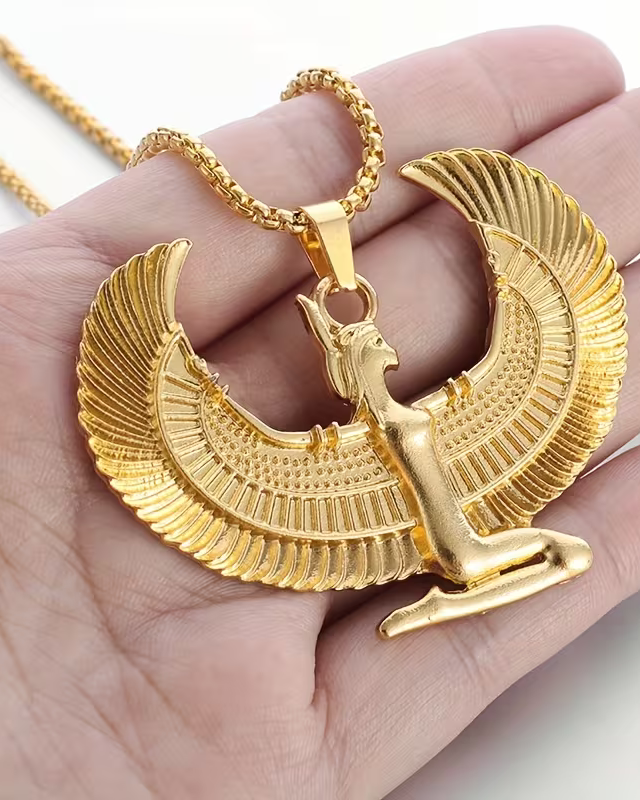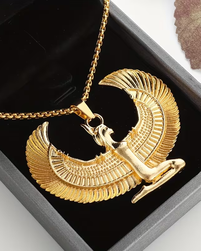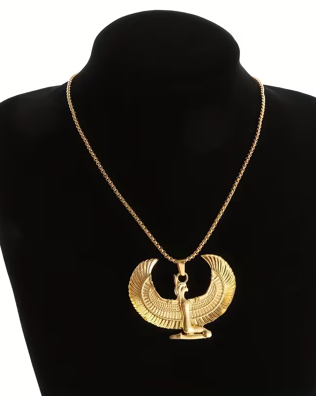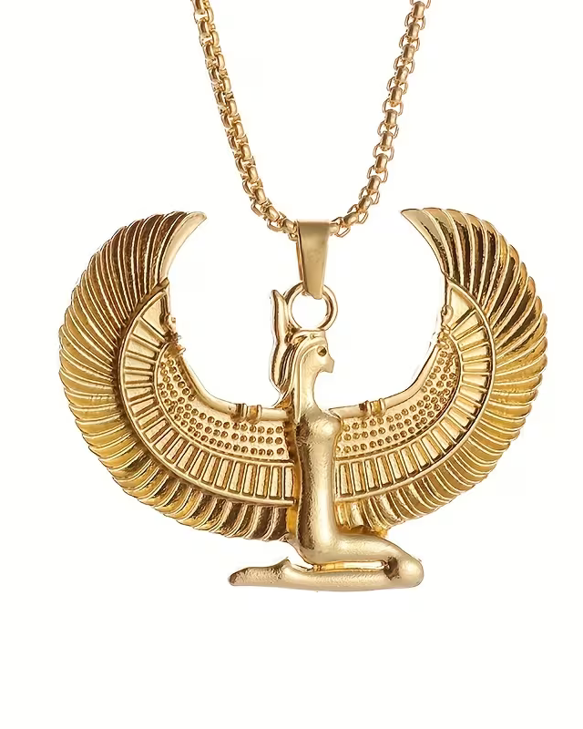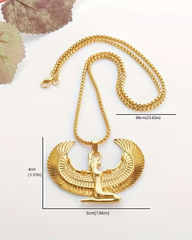 1pc Fashion Ancient Egyptian Goddess Spread Wings Pendant Necklace For Men And Women, Retro Good Luck Amulet Jewelry Gift