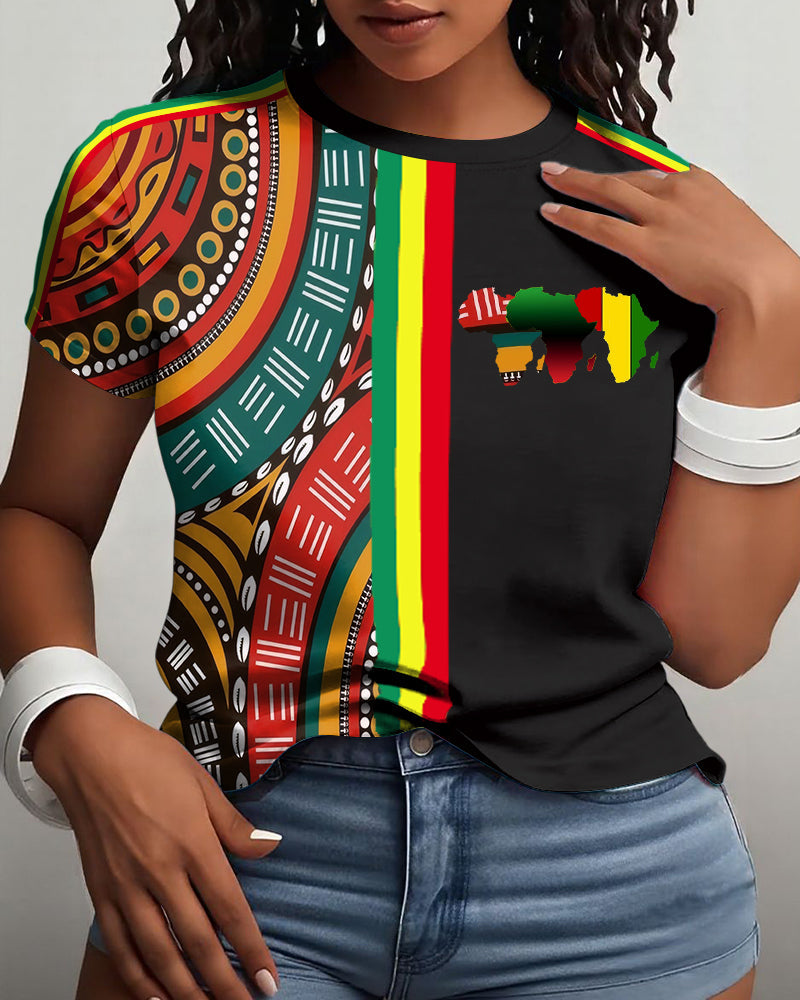 African Map Totem Prints Short Sleeve T-shirt