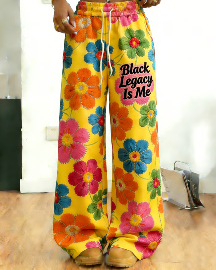 Cartoon Afro Woman Print Crewneck Long Sleeve Pocket Dress
