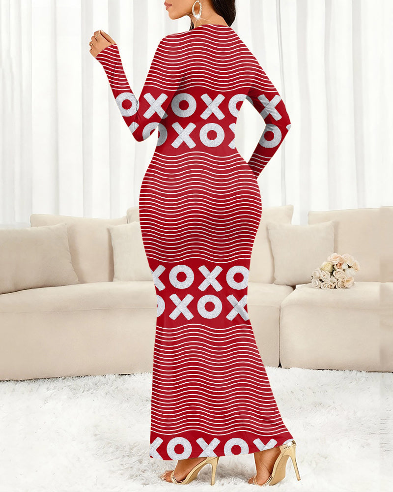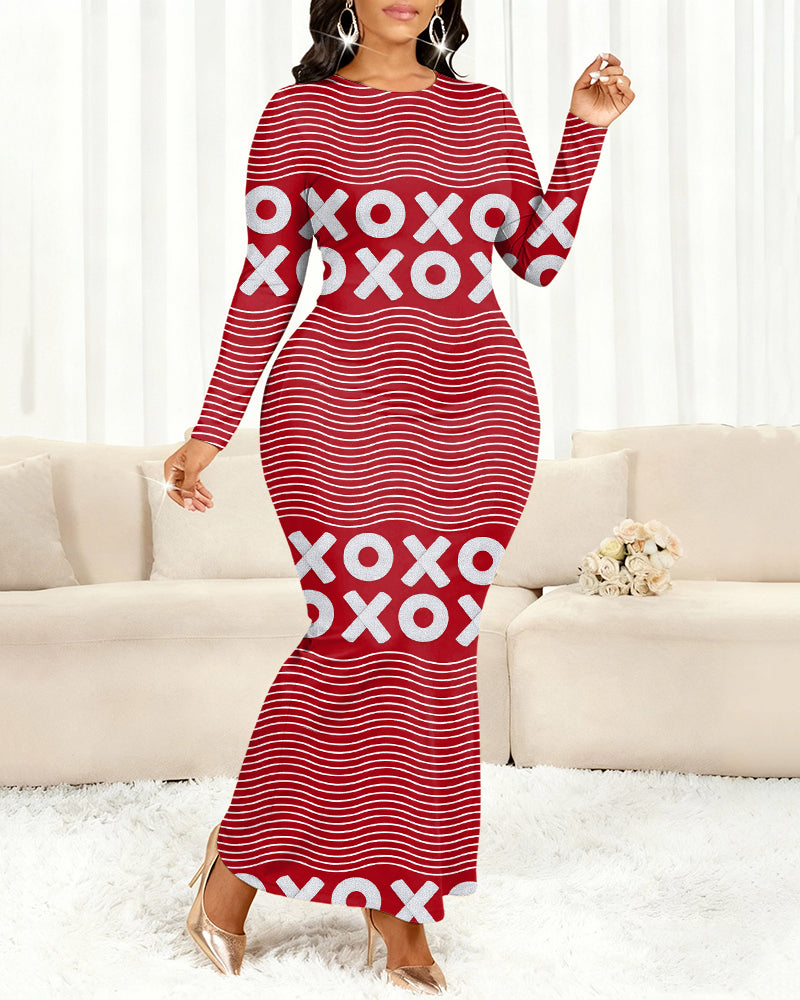 Women Hot Patch Print Crewneck Long Sleeve Dress